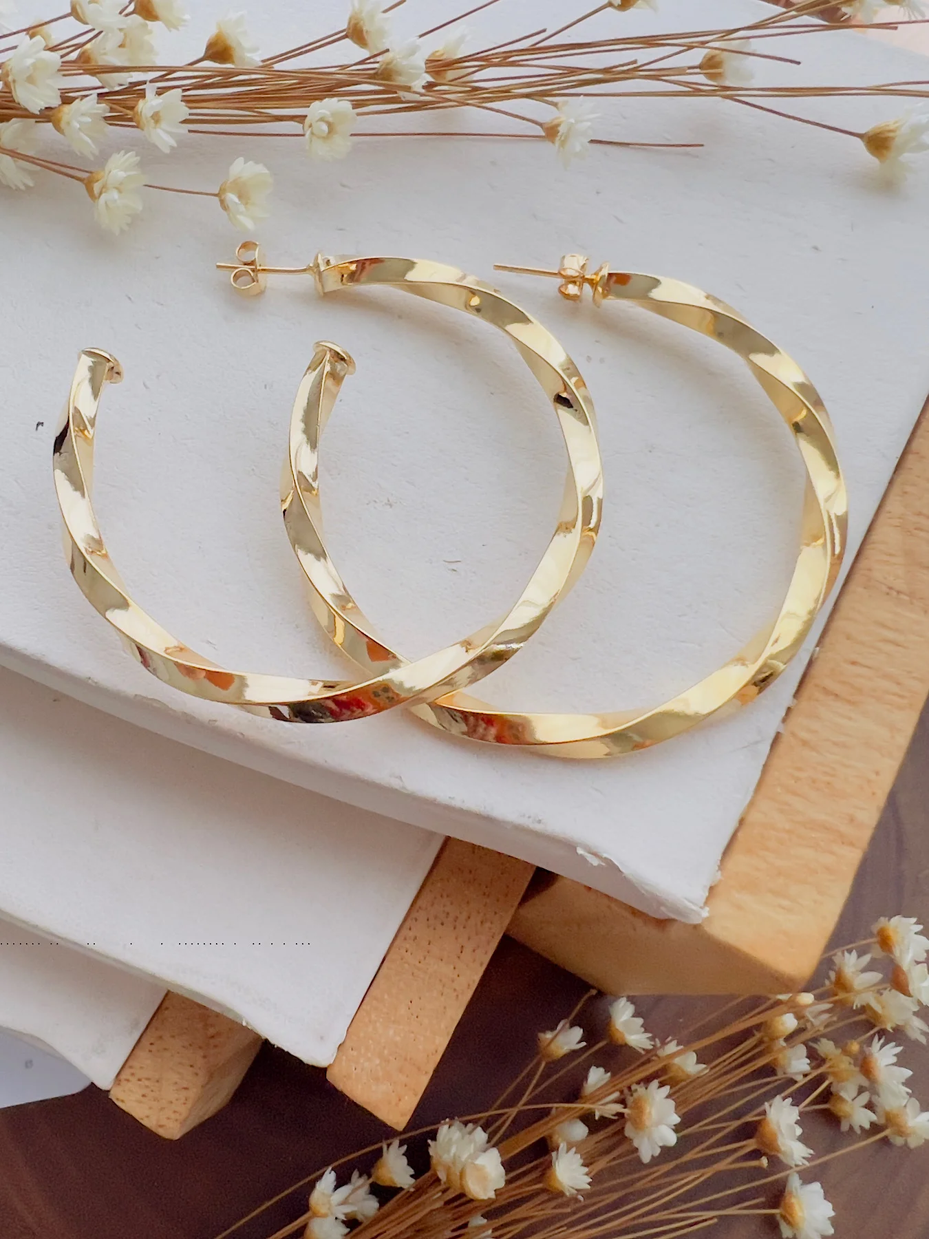 Argola Folheado a Ouro Tubo Quadrado Torcido G – 220