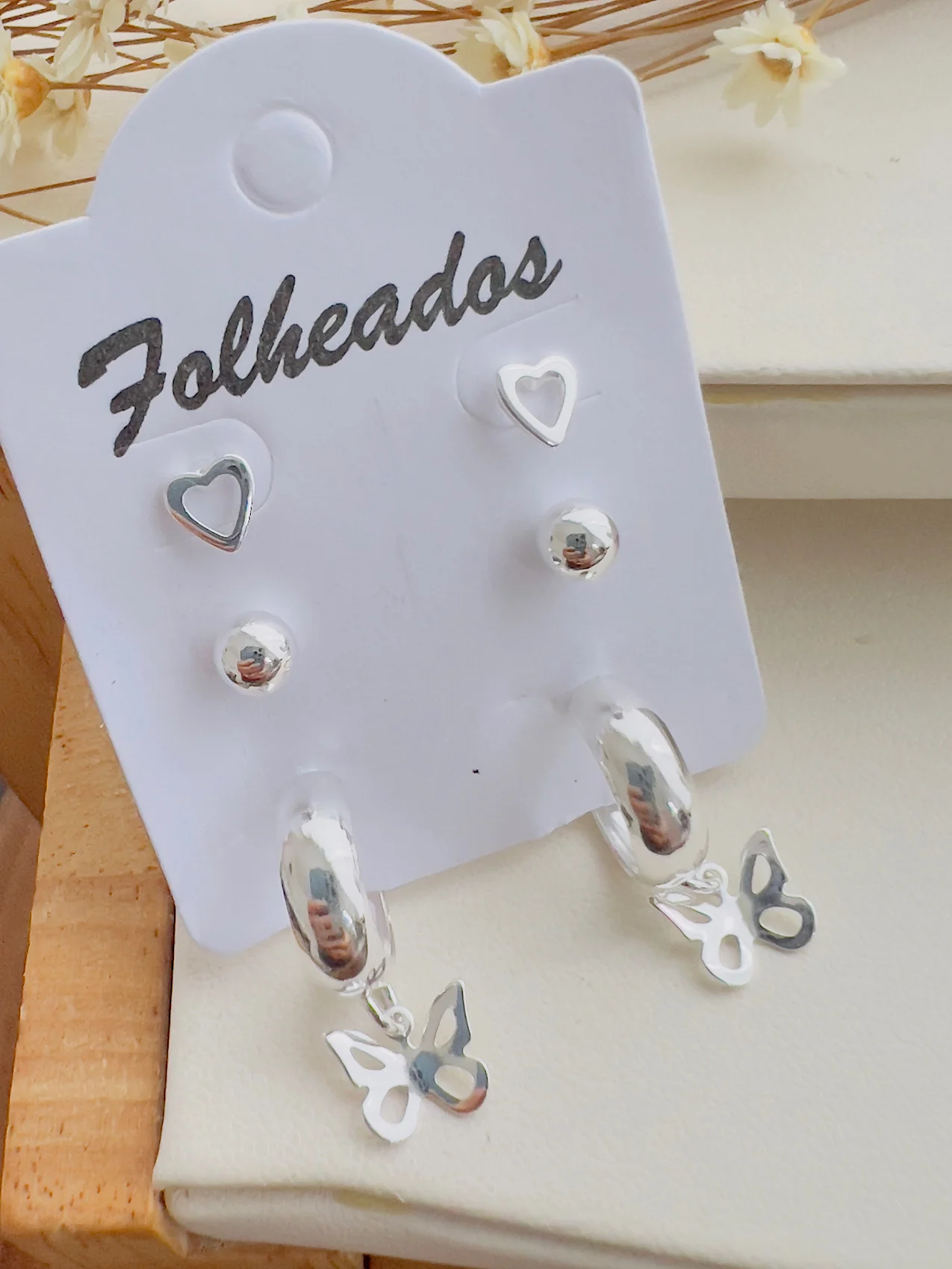 Cartela Folheada a Prata Coração Borboleta – 112