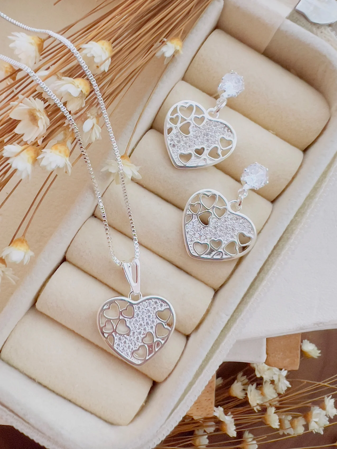 Conjunto Folheado a Prata Micro Zircônia Coração – 509