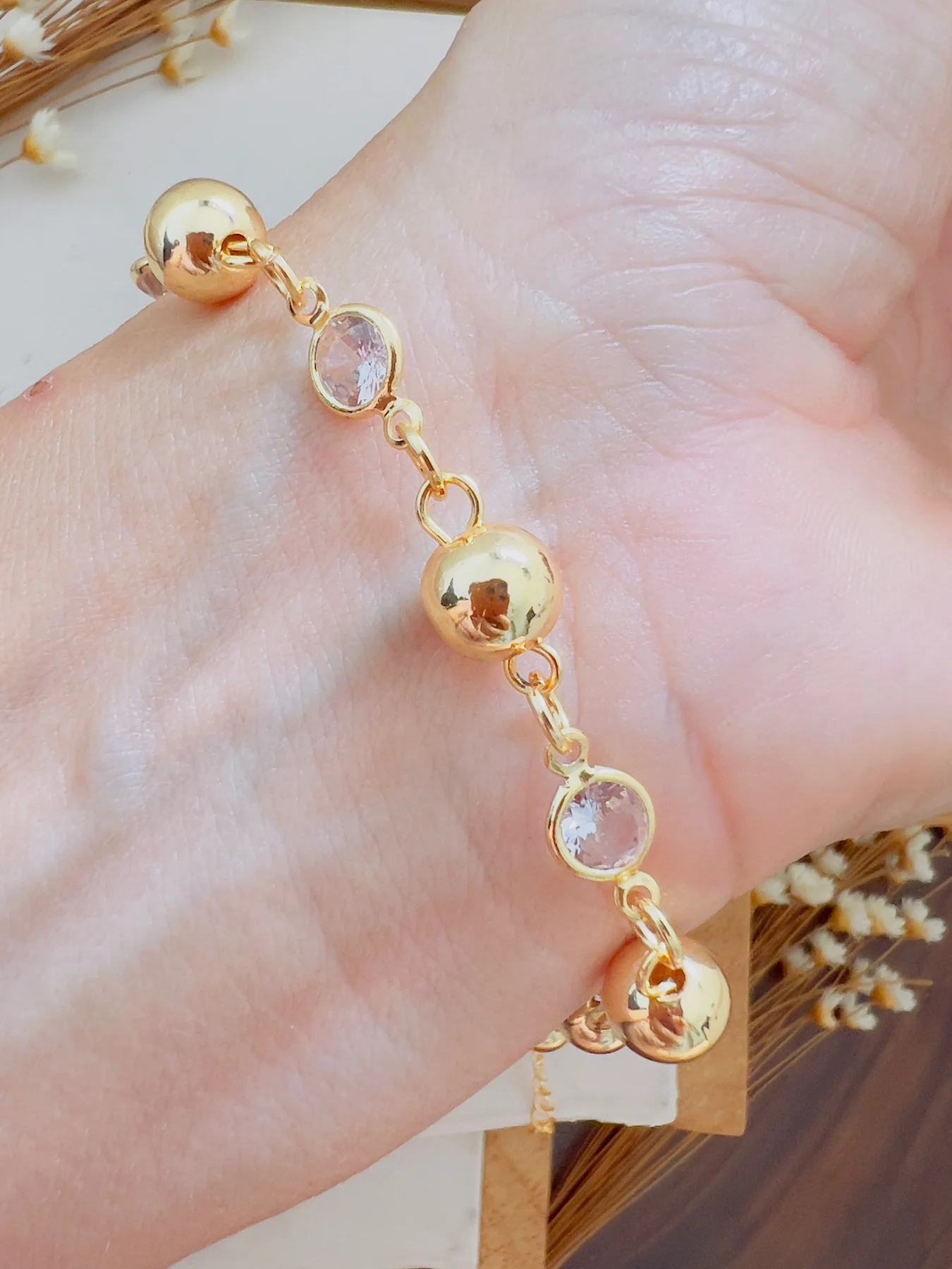 Pulseira Folheada a Ouro Esfera Zircônia – 705