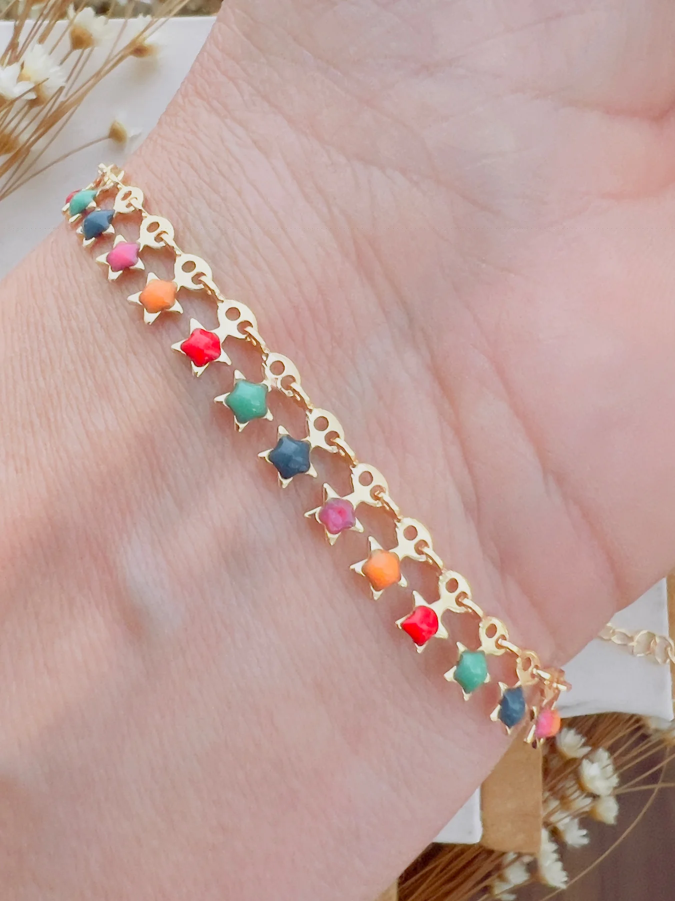 Pulseira Folheada a Ouro Estrela Resinado Colorido – 712