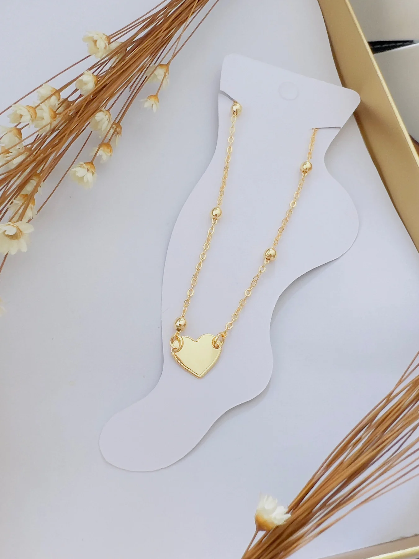 Tornozeleira Folheado a Ouro Bolinhas Coração – 907
