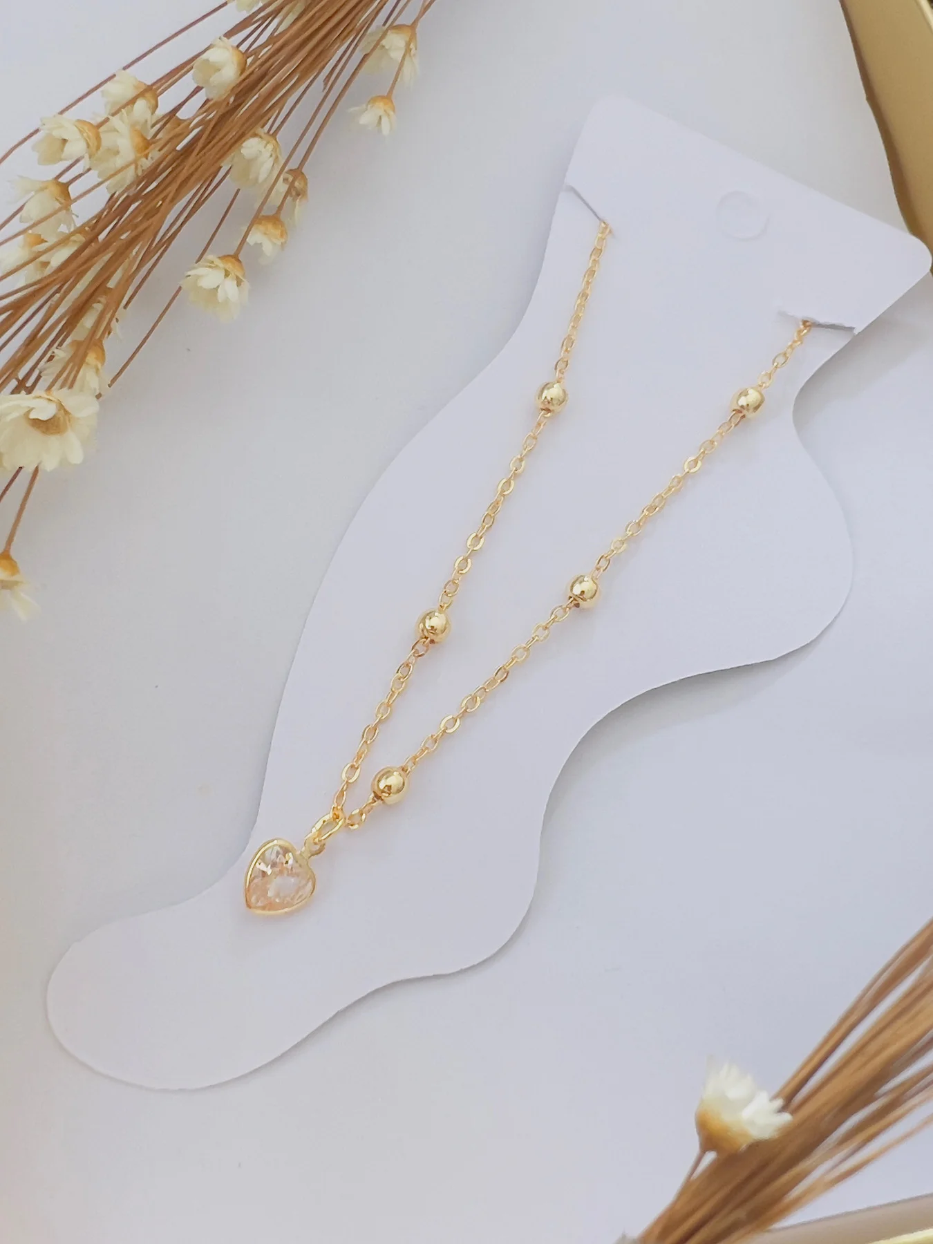 Tornozeleira Folheado a Ouro Bolinhas Coração Zircônia – 905